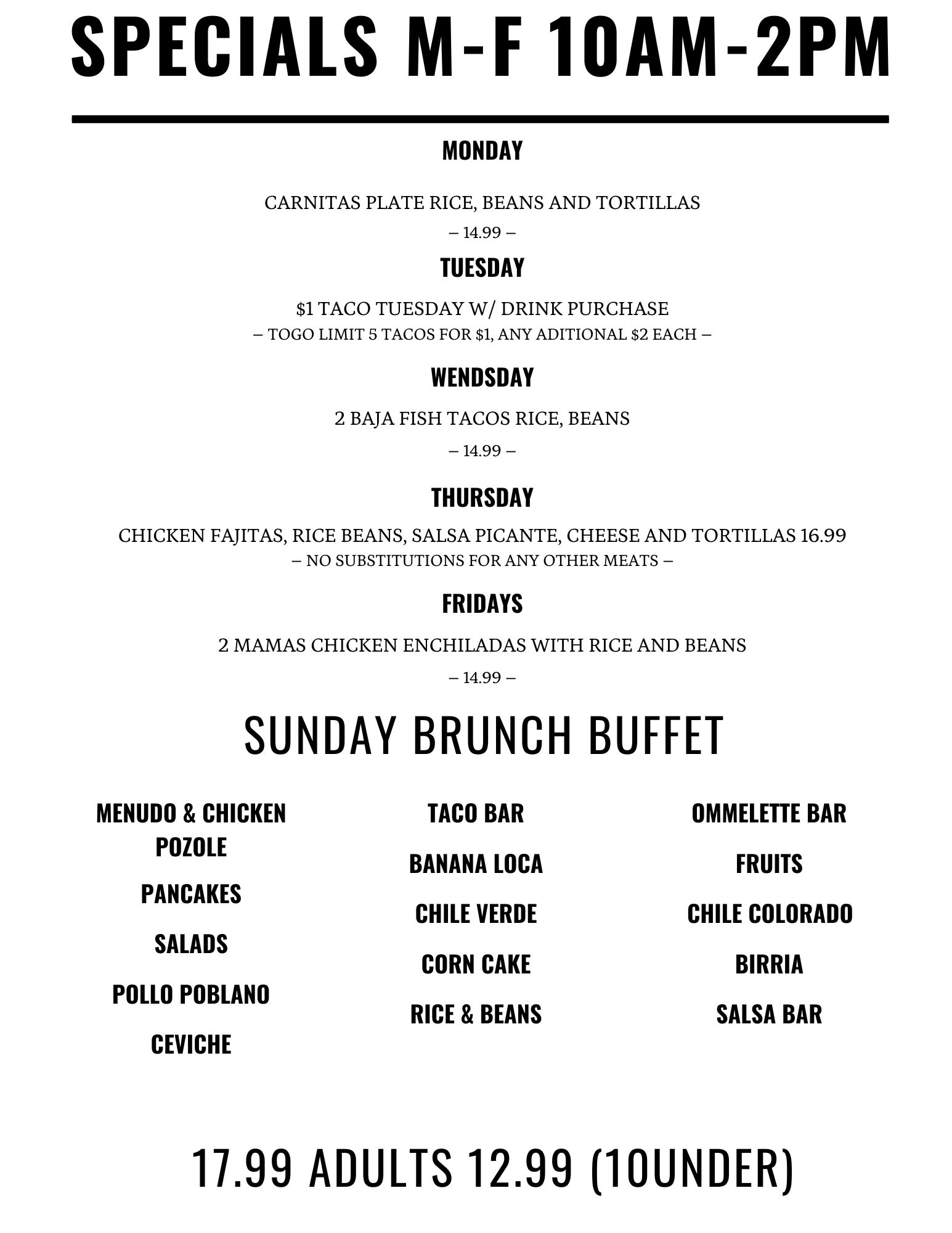 Sunday (Brunch Buffet): 9:00 am - 2:30 pm